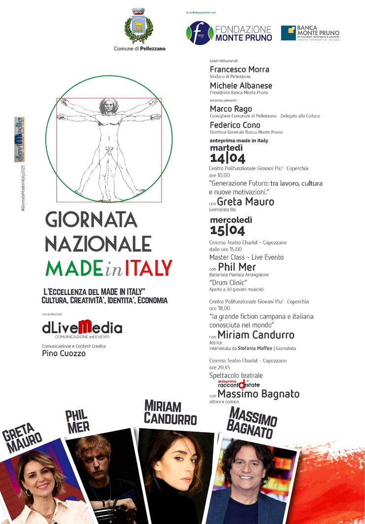 L’evento, promosso da DLiveMedia in collaborazione con il Comune di Pellezzano e la Fondazione Monte Pruno, si inserisce in un più ampio percorso di valorizzazione dell’identità italiana, con particolare attenzione alle nuove generazioni, chiamate a raccogliere e rinnovare il patrimonio culturale, creativo ed economico del nostro Paese.