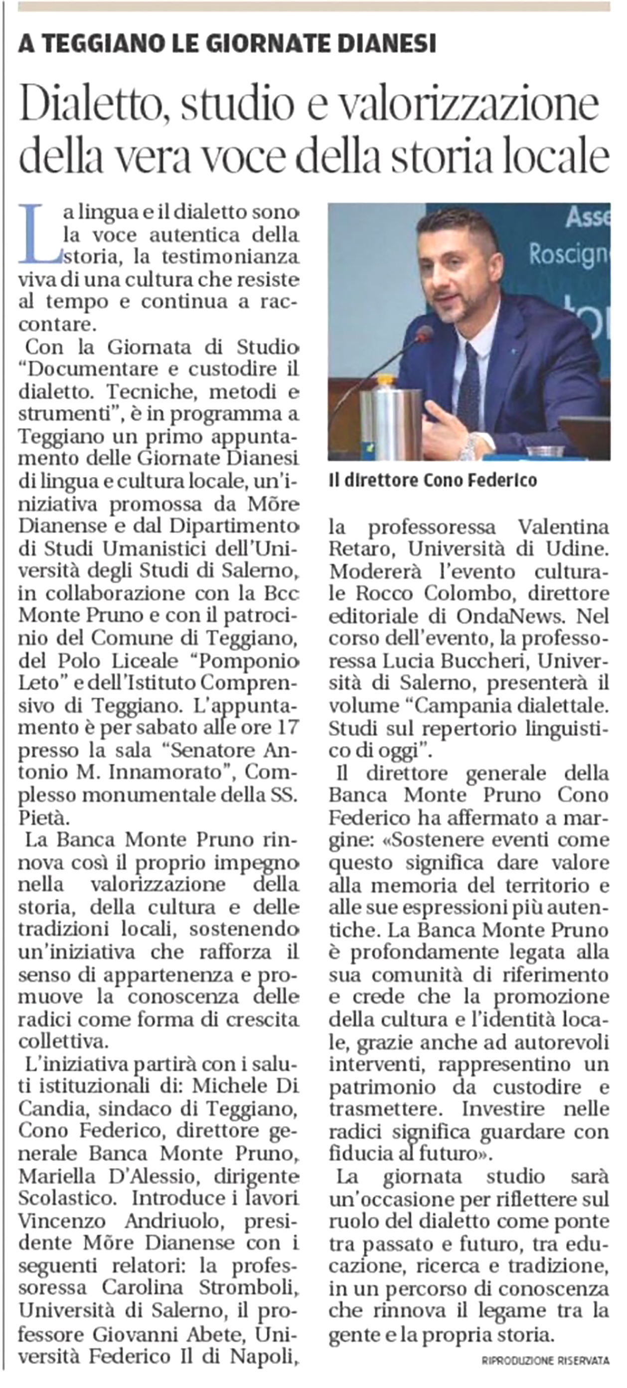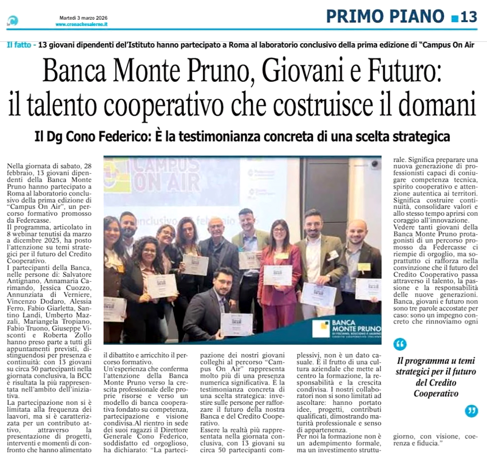 LE CRONACHE - BANCA MONTE PRUNO E UNIVERSITÀ: NUOVE ESPERIENZE DI LAVORO IN BCC - Il Vice-Direttore Generale Federico a Napoli per ufficializzare la collaborazione