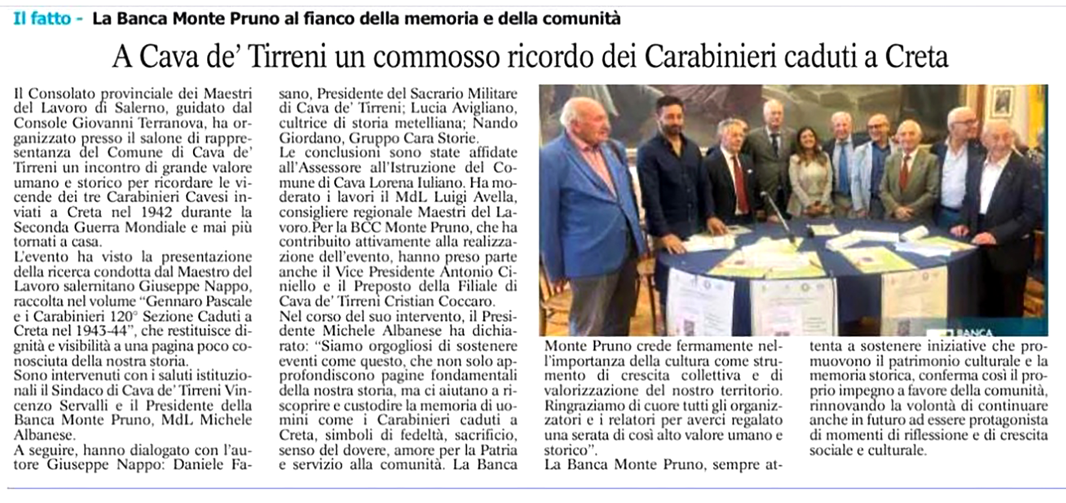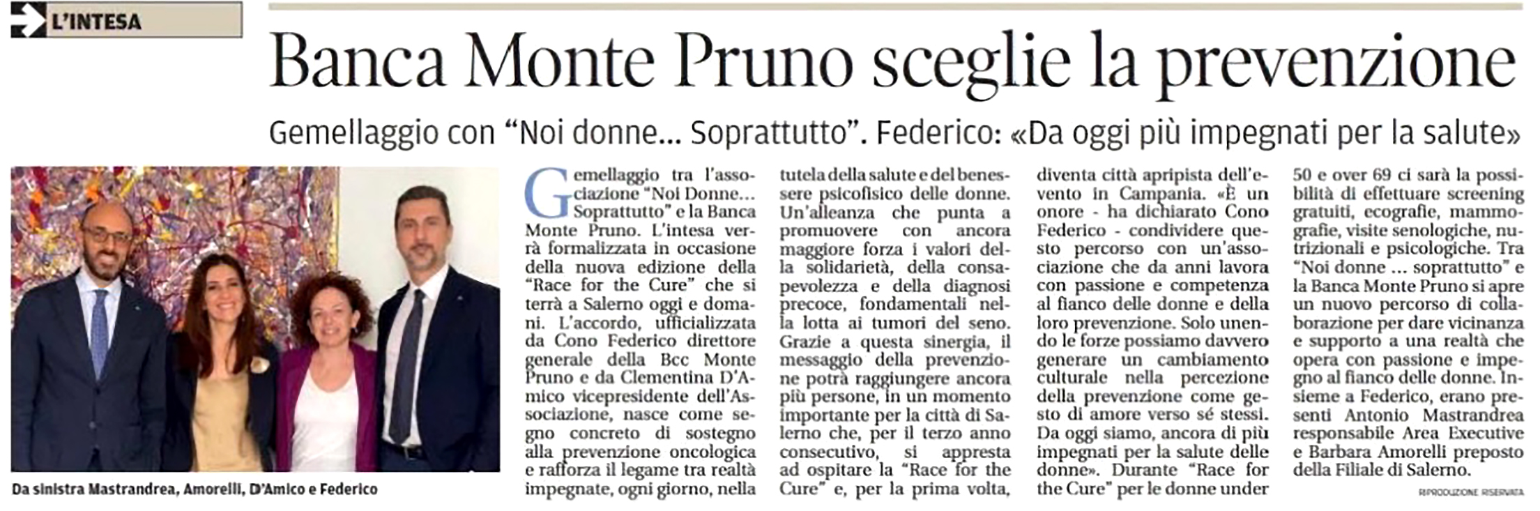 Banca Monte Pruno abbraccia Agro e Costiera