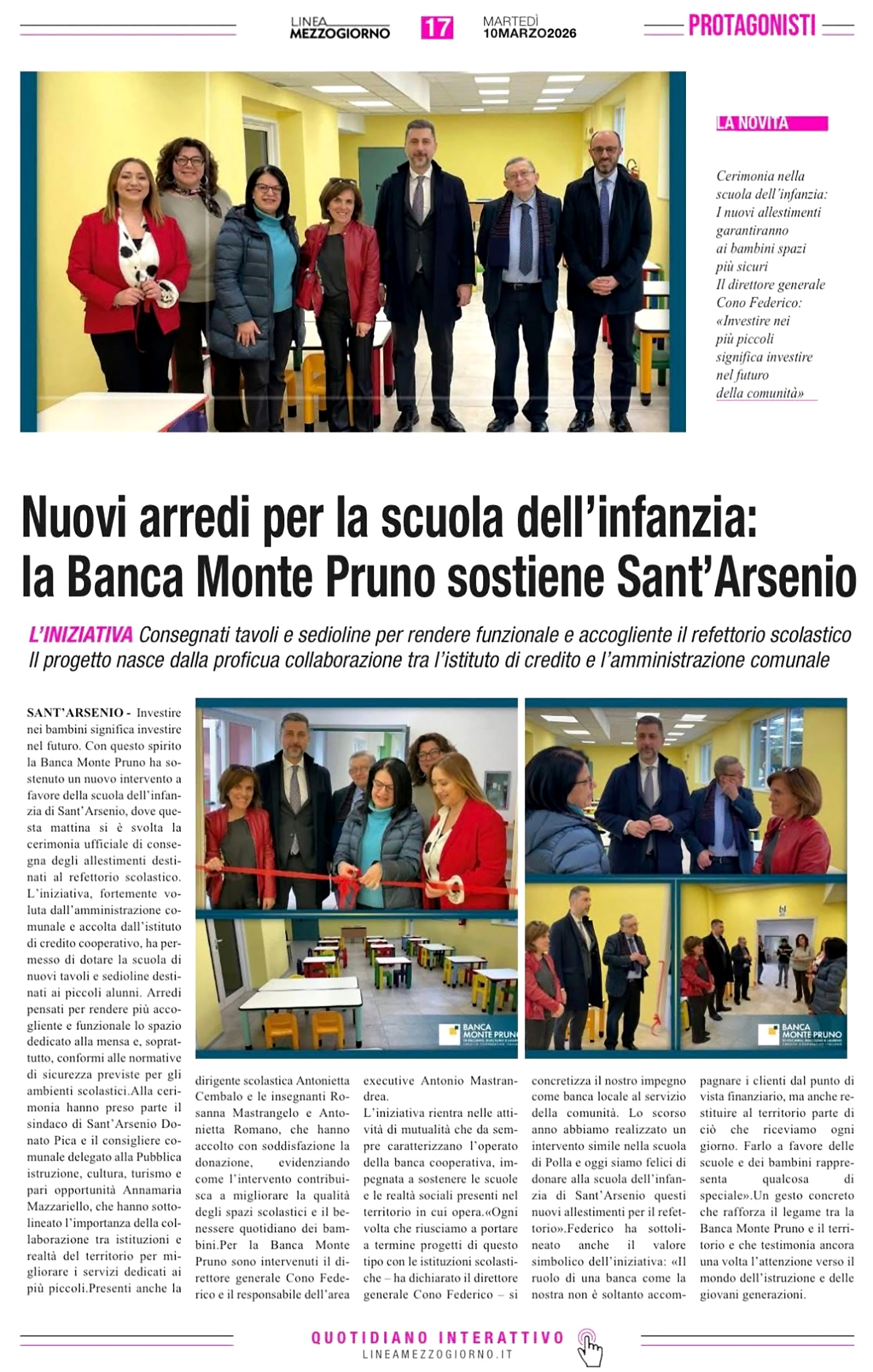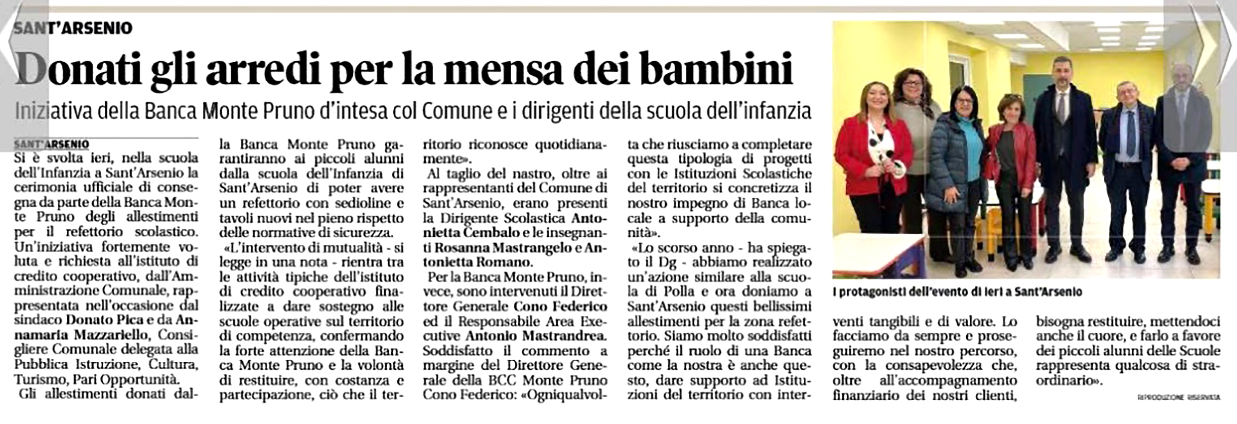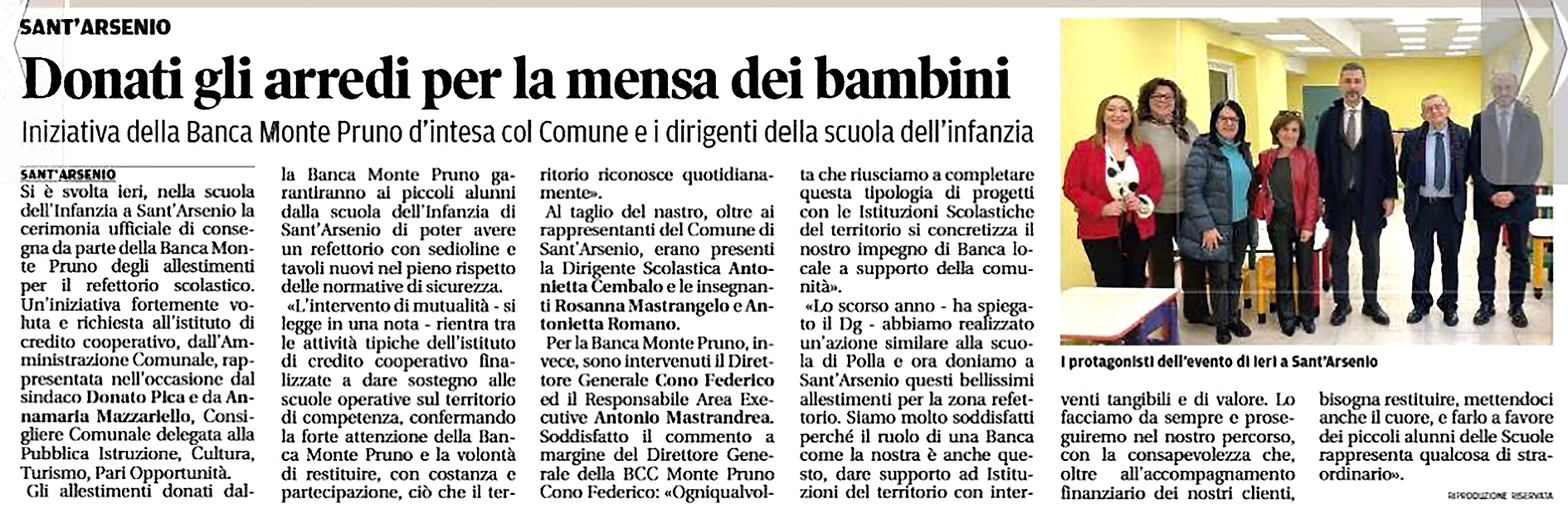 Nuovi arredi per la Scuola dell'infanzia: la Banca Monte Pruno sostiene Sant'Arsenio