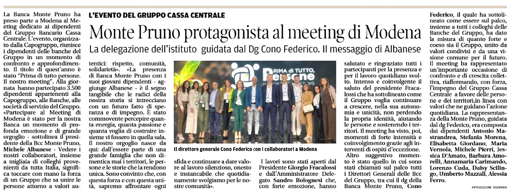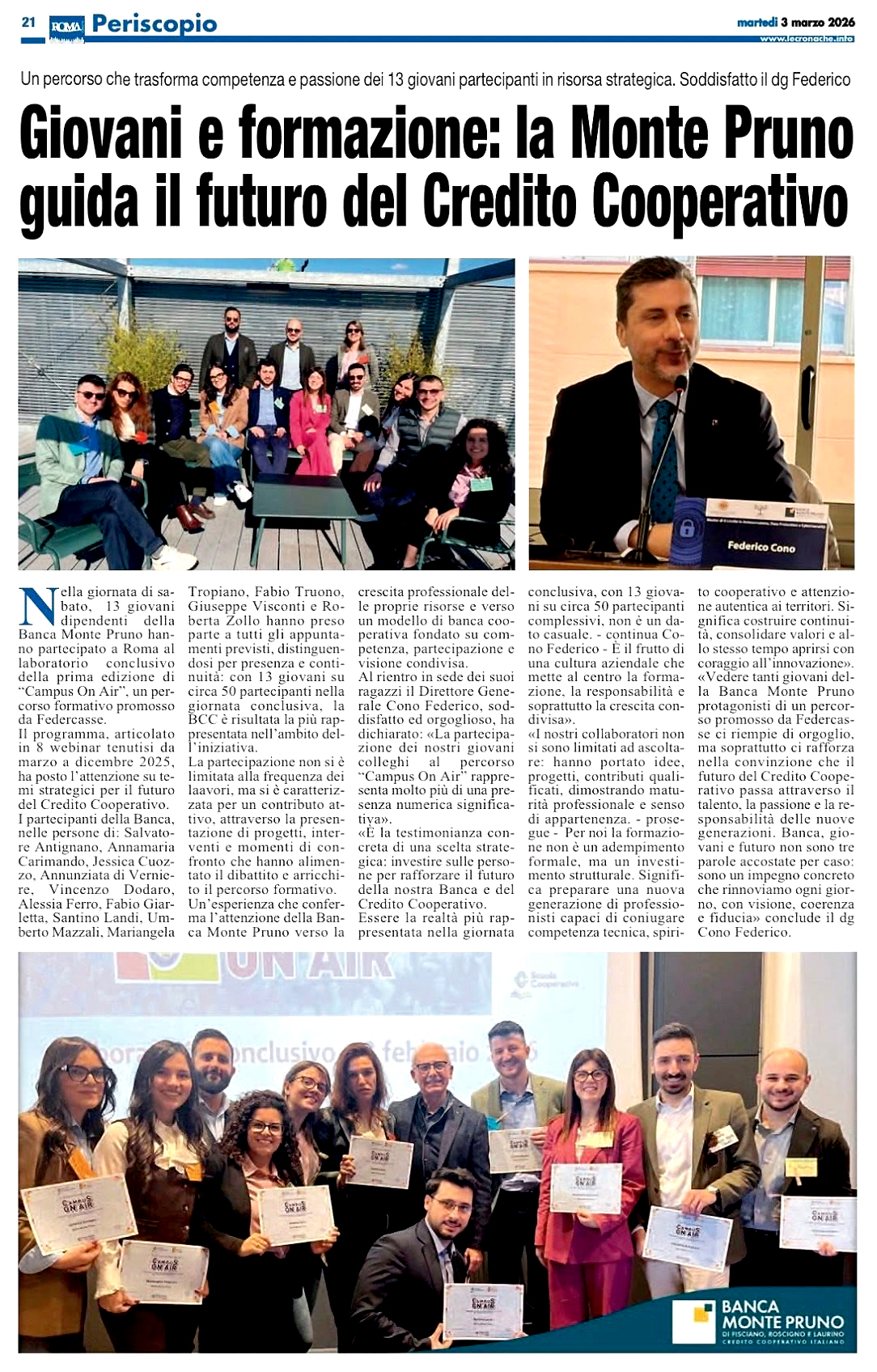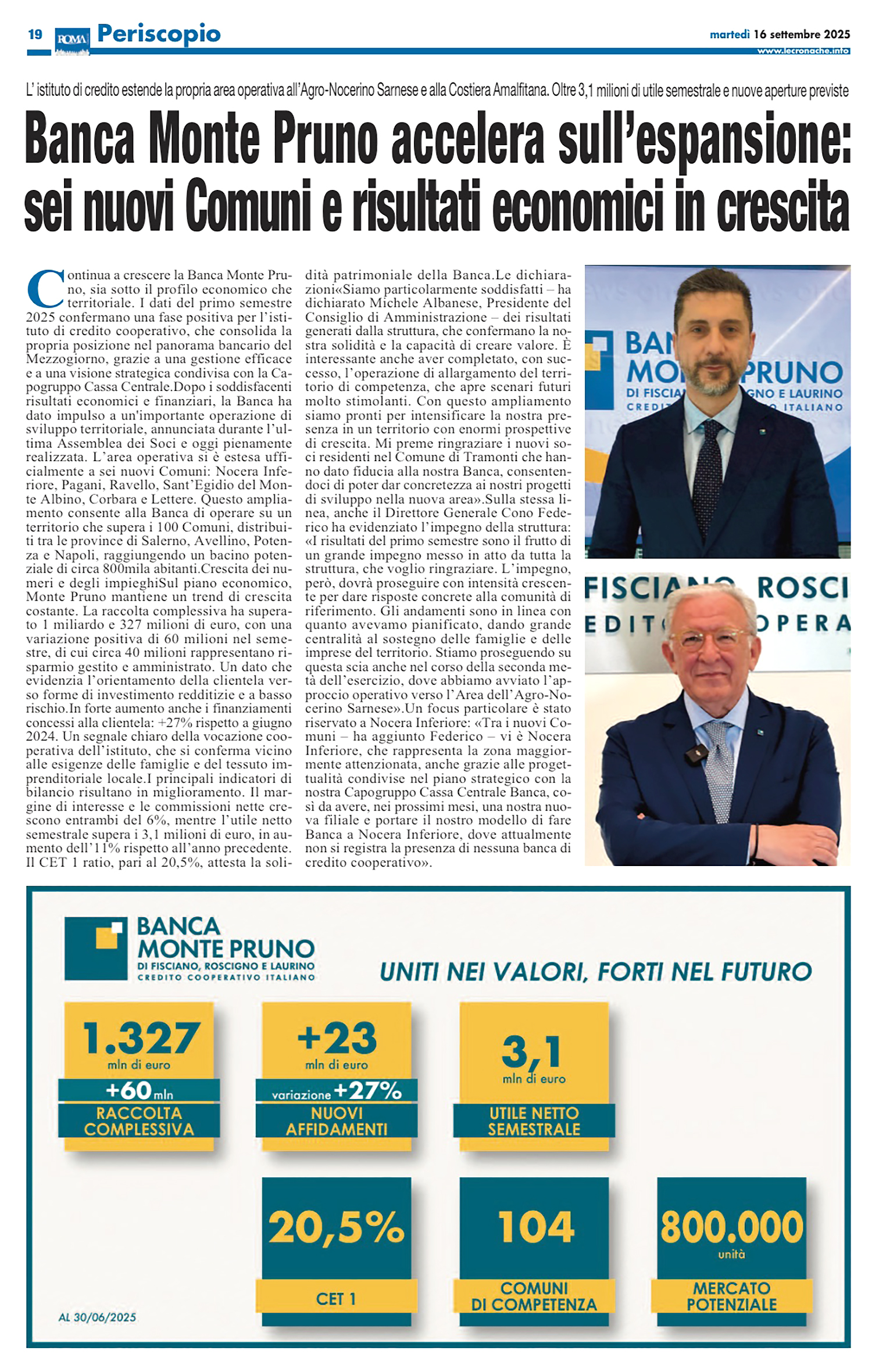 LE CRONACHE - BANCA MONTE PRUNO: LA FIDUCIA RESTA IL SEGRETO DEL SUCCESSO