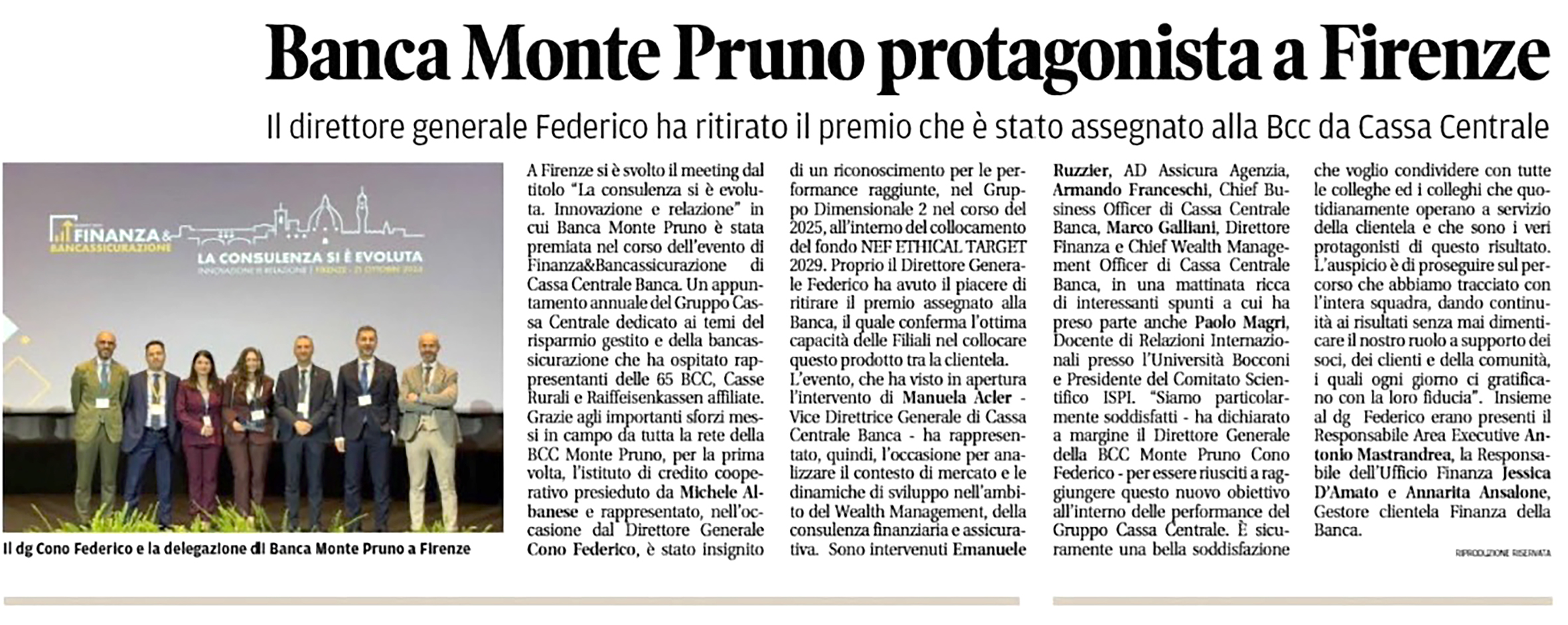 Banca Monte Pruno protagonista a Firenze